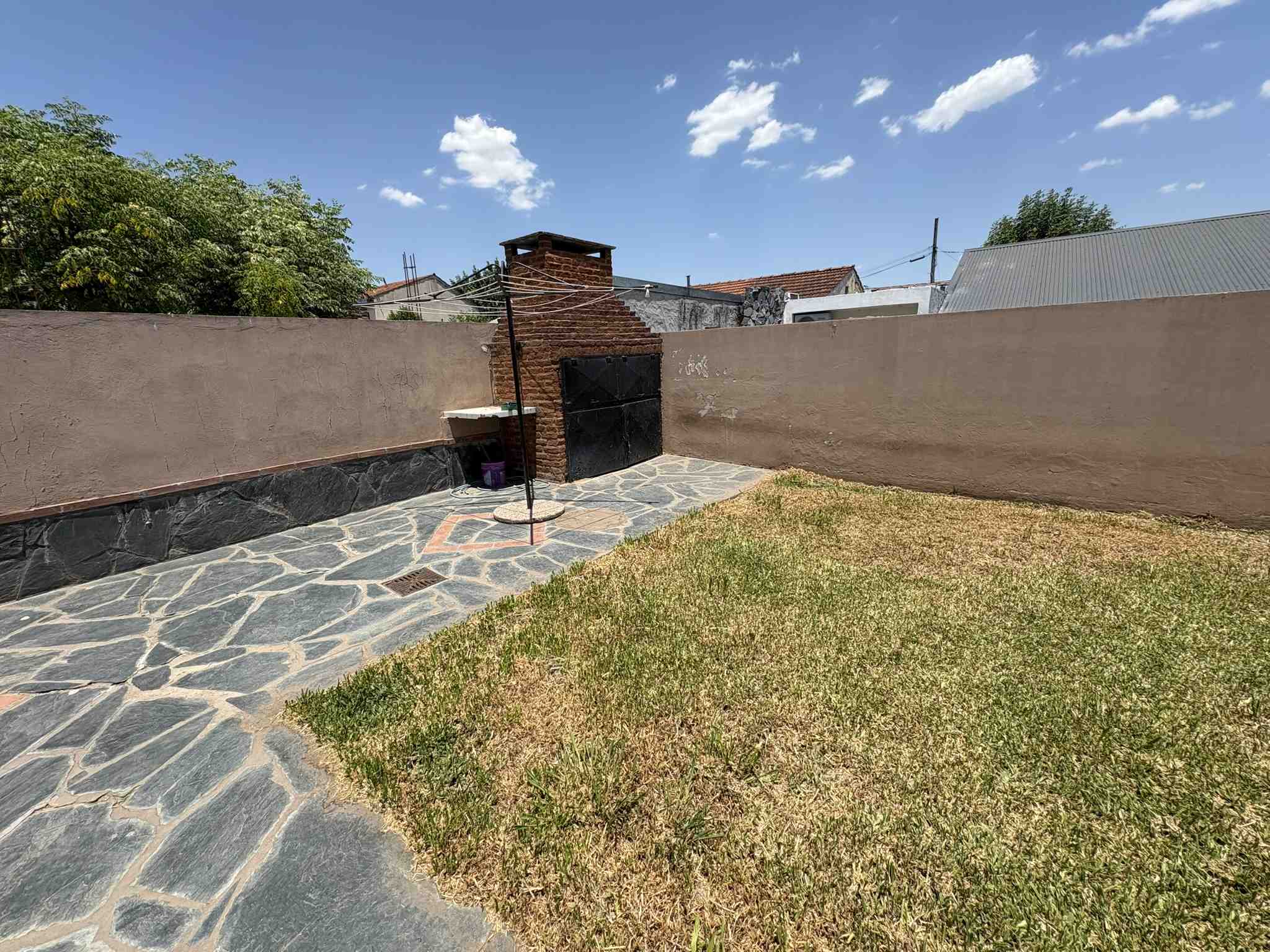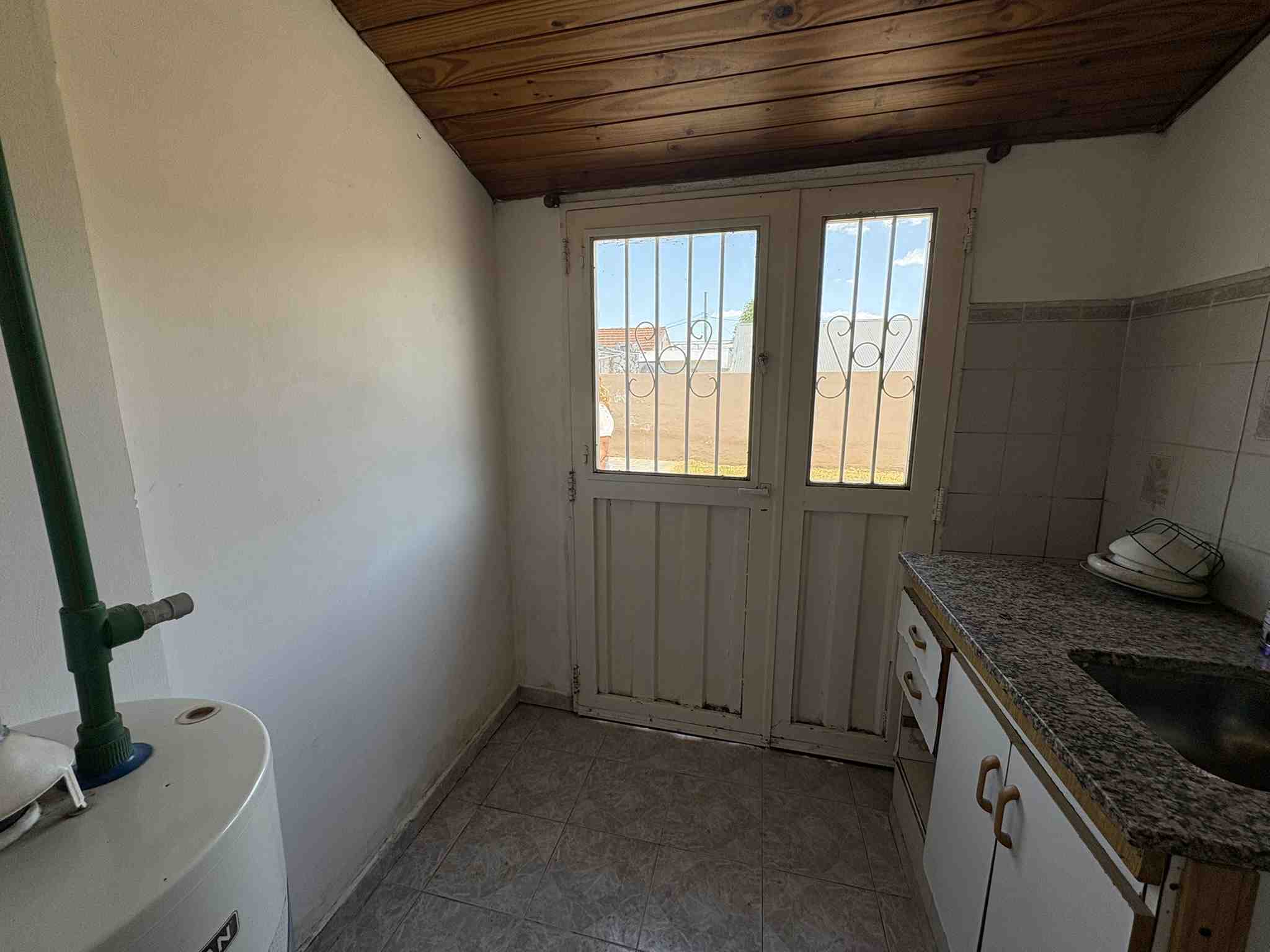 El inmueble cuenta con living recepción, cocina comedor, sin artefacto de cocina, espacio de lavadero. Dos dormitorios, cada uno de ellos con placard, baño completo. Amplio garaje. Patio con césped, parrilla.