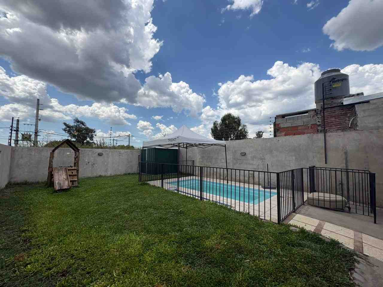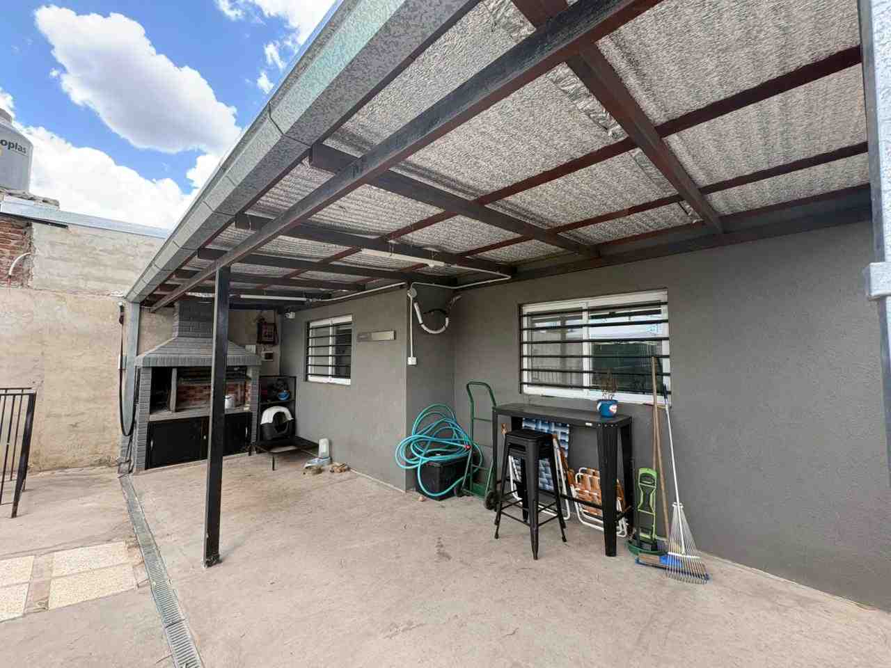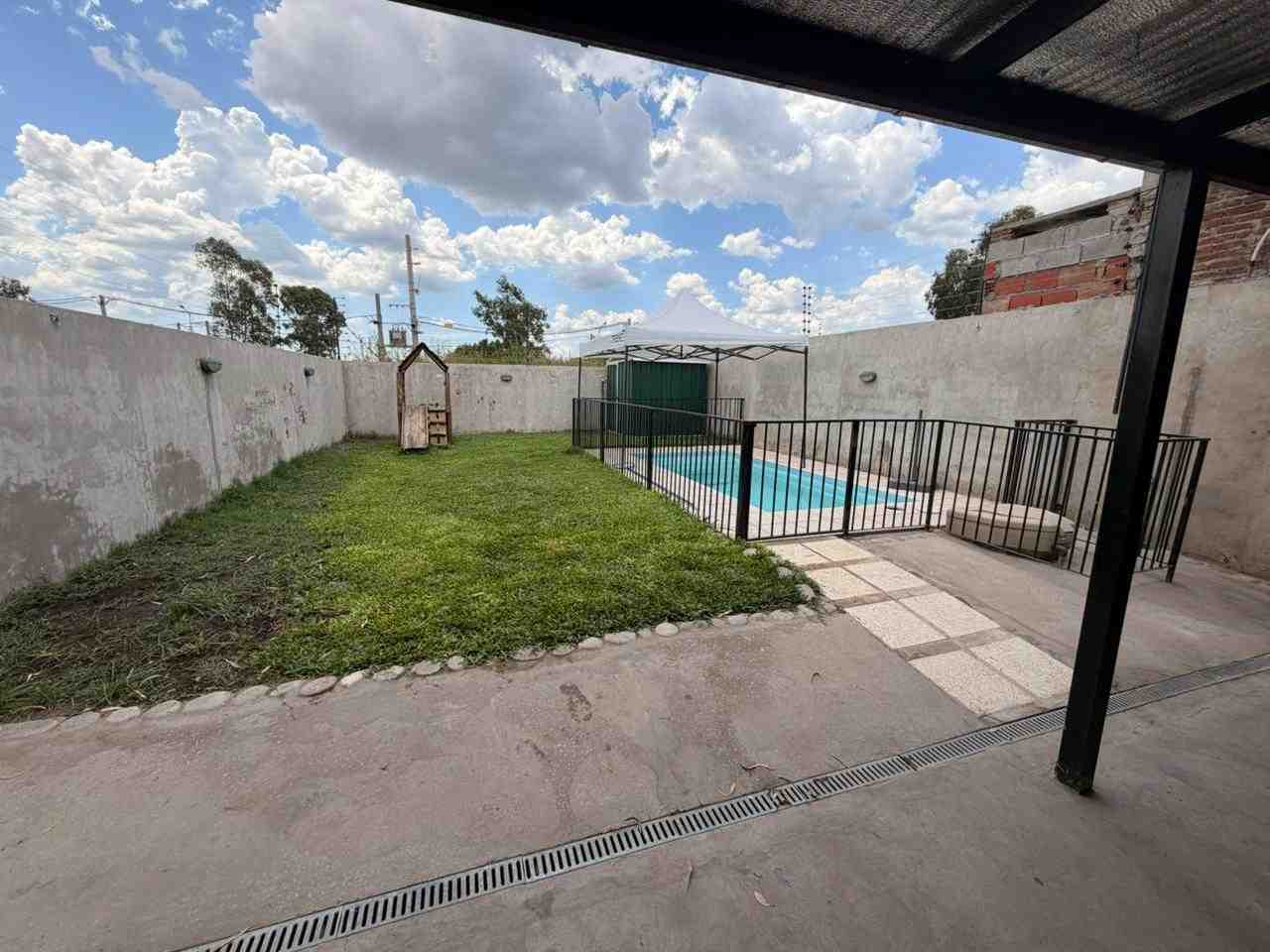 Se vende casa en Barrio Puertas del Sol, barrio abierto en pleno desarrollo, ubicado en la ciudad de Campana con ingreso por Ruta N° 6. El inmueble cuenta con tres dormitorios, cada uno con placard e interior, aire acondicionado y ventilador. Posee living comedor con cocina integrada, hogar a leña marca BOSCA, cocina equipada con alacena y bajomesada, y baño completo. En el exterior dispone de patio con espacio verde, piscina cercada, parrilla en galería techada y garaje techado para un vehículo. De poca antigüedad, la propiedad se encuentra lista para habitar, con construcción moderna, cómoda y práctica para una familia tipo.